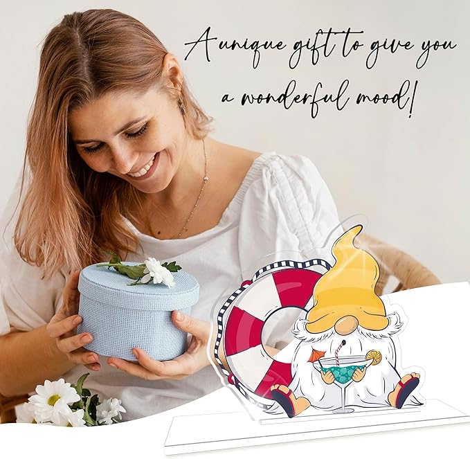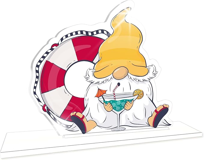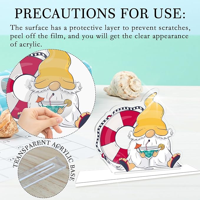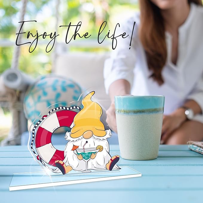 Hello Summer Acrylic Sign - Beach Gnomes Summer Acrylic Plaque - Seasonal Welcome Tabletop Decoration Sign Favors For Friends Family - Home Desk Office Shelf Supplies & Decor-A04