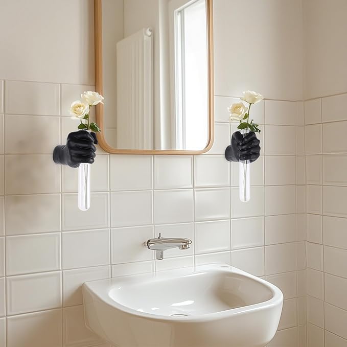 2 Pieces Wall Sculptures, Hands Vase Home Decor, Wall Mount Art Sculpture, Unique Wall Art Statue, Funky Flower Vase Decorations, Modern Eclectic Hanging Decor,Hands Statue (Black)