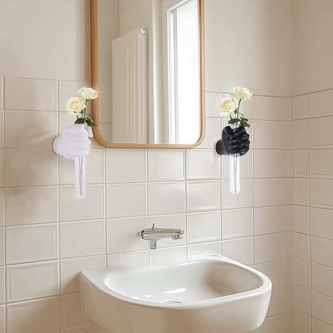 2 Pieces Wall Sculptures, Hands Vase Home Decor, Wall Mount Art Sculpture, Unique Wall Art Statue, Funky Flower Vase Decorations, Modern Eclectic Hanging Decor,Hands Statue (Black&White)