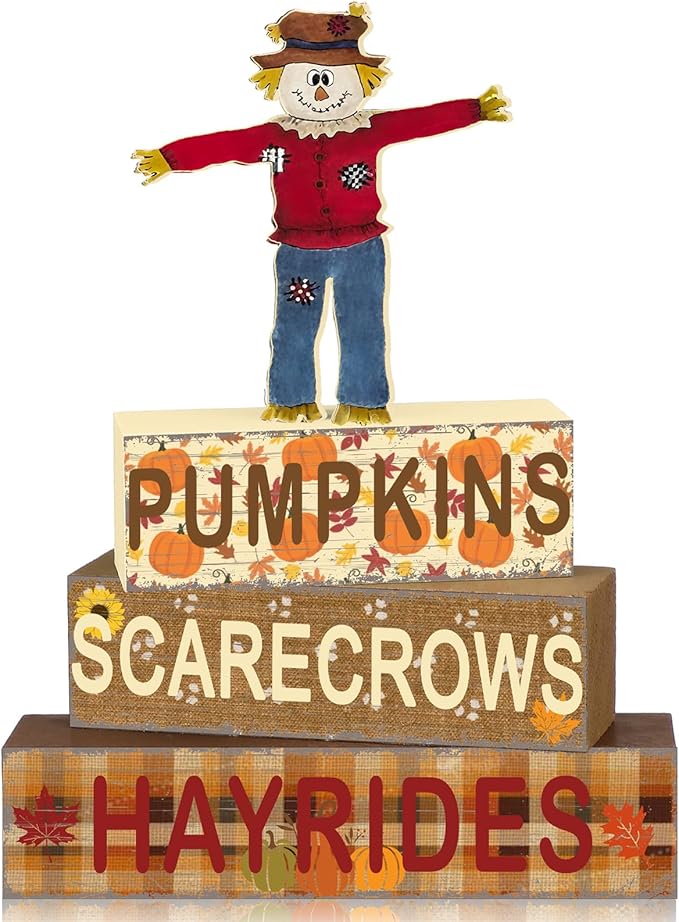 - Outstanding Material and Artistry: our fall cute scarecrow wooden decor are crafted from reliable wood that exudes a warm, rustic charm, safe and sturdy; The surface is well polished, painted, not easy to fade; Each piece is meticulously shaped and painted, meets your needs for both aesthetics and durability; Note: painted product may have a paint smell, you can leave it in a ventilated place for 24 hours to remove the odor