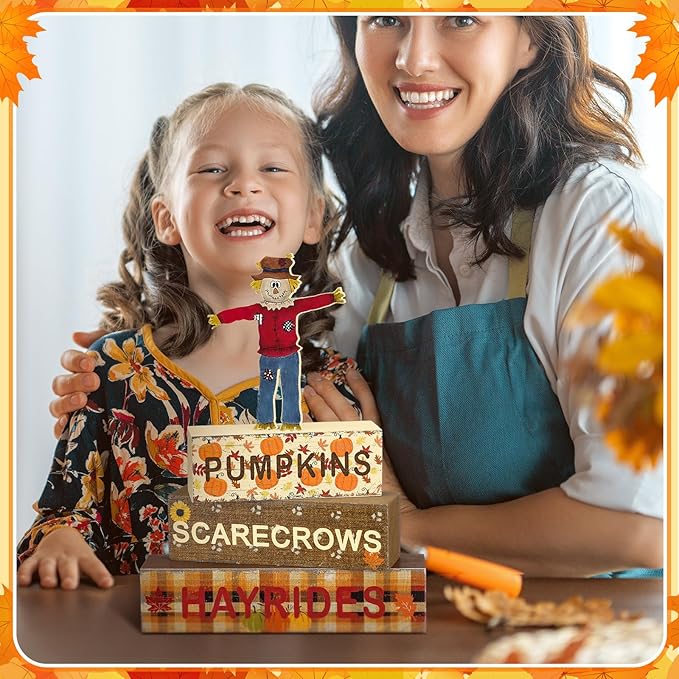 - Comprehensive Packaging: this package comes with 1 smiling scarecrow wooden sign with outstretched arms and 3 faux stacked books, offering you multiple elements to employ in your decorating adventures; Stacked books are printed with Hello Fall and maple leaves, nice addition to your fall decor