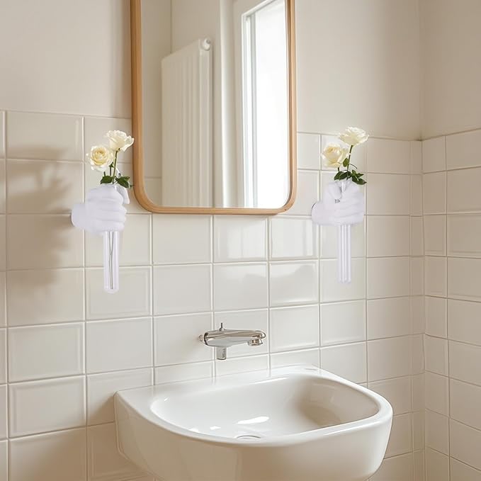 2 Pieces Wall Sculptures, Hands Vase Home Decor, Wall Mount Art Sculpture, Unique Wall Art Statue, Funky Flower Vase Decorations, Modern Eclectic Hanging Decor,Hands Statue (White)