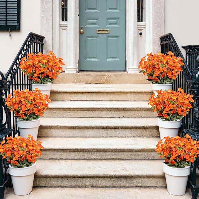 - Lifelike Autumn Beauty: Vibrant orange faux flowers with realistic petals and natural textures instantly brighten any space. Perfect for creating warm, inviting fall vibes in gardens, porches, or indoor settings.