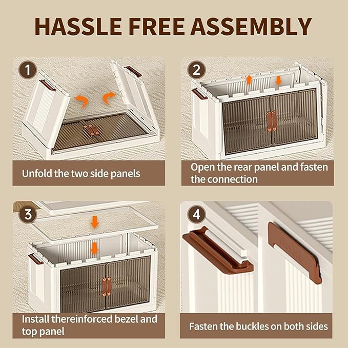 - 【Clear Visibility & Space-Saving Mobility】Transparent open-front panels provide instant content access, paired with stackable storage bins with wheels for smooth mobility across floors. Tool-free assembly snaps layers in seconds, while the foldable storage cabinets adapts to compact spaces like entryways or dorm rooms. Magnetic closures secure doors, maximizing vertical storage in collapsible units, and the wheels could be locked in place for security needs