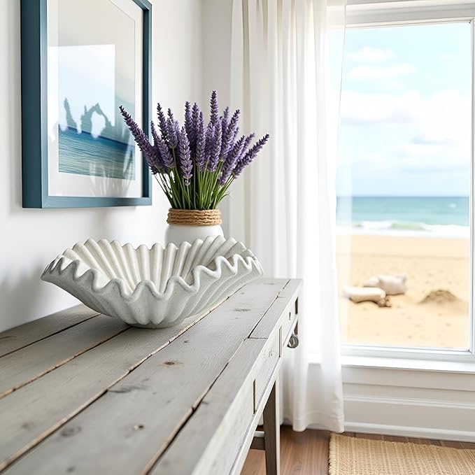 Large Decorative Bowl decor, Scalloped Pedestal Bowls for Modern Home Decor,Ruffle Decor,Stylish Key Bowl for Entry Table,Decorative Fruit Bowl for Kitchen Counter, Light Gray