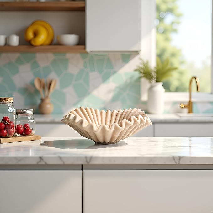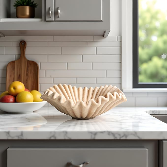 Large Decorative Bowl decor, Scalloped Pedestal Bowls for Modern Home Decor,Ruffle Decor,Stylish Key Bowl for Entry Table,Decorative Fruit Bowl for Kitchen Counter,Beige