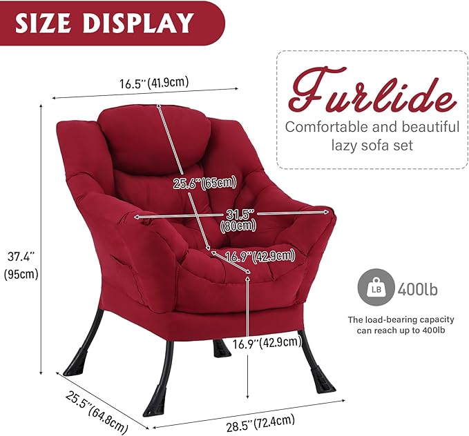 - 【STURDY & STABLE LAZY CHAIR】: Built with a strong steel frame, this leisure chair supports up to 400 lbs. The durable steel frame ensures long-lasting reliability. Non-slip foot covers prevent sliding and protect your floors.
