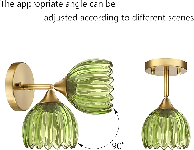 2 Pack 1 Light Vintage Wall Sconces Tulip Dark Green Glass Lampshade Hradwired Modern Gold Wall Lighting Fixture for Bedside Bedroom Doorway