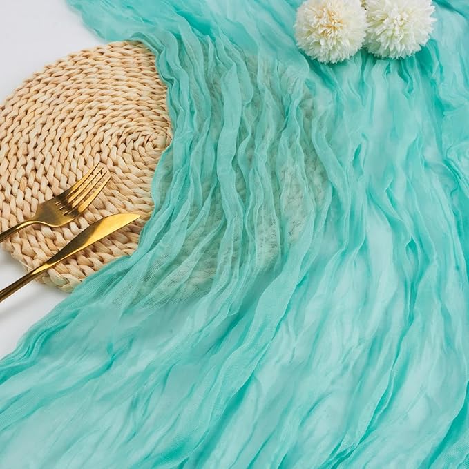 - [Soft Material]: Sky Blue cheesecloth table runner is made of high quality polyester, soft to the touch and the cheesecloth fabric make the table runner sheer enough to swaying in the wind.