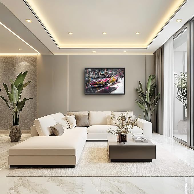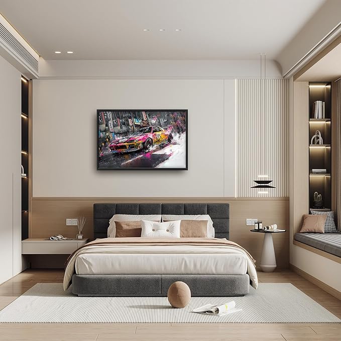 Flintis Large Japanese Graffiti Car Framed Wall Art Racing Car Pictures Wall Decor Abstract Street Racing Canvas Painting Print Artworks Framed for Living Room Bathroom Master Bedroom 36L X 24W