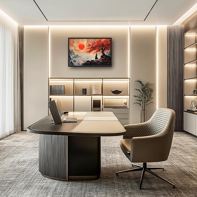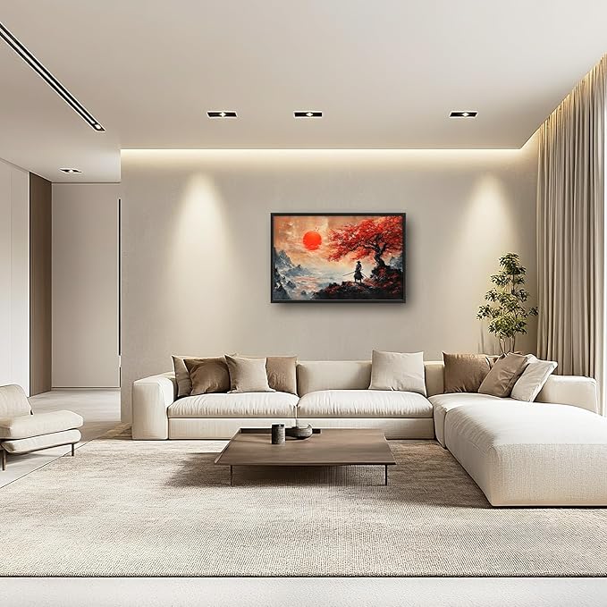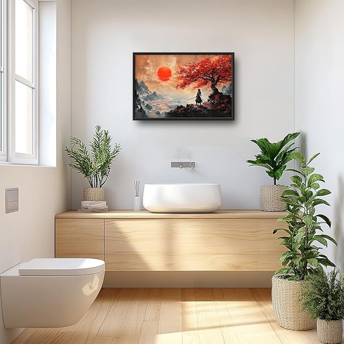 Flintis Large Samurai Framed Wall Art Japan Warrior Pictures Wall Decor Abstract Japanese Art Canvas Painting Print Artworks Decor Framed for Living Room Bathroom Master Bedroom Office 36L X 24W