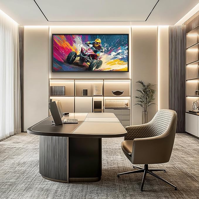 Flintis Large Kart Racing Framed Wall Art Racing Car Pictures Wall Decor Abstract Colorful Race Car Canvas Painting Print Artworks Decor Framed for Living Room Bathroom Master Bedroom 60L X 30W