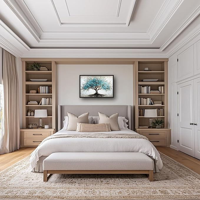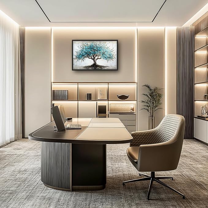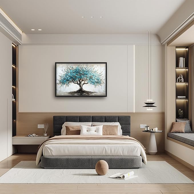 Flintis Large Tree of Life Framed Wall Art Teal Blue Tree Pictures Wall Decor Abstract Natural Landscape Canvas Painting Print Artworks Framed for Living Room Bathroom Master Bedroom 36L X 24W