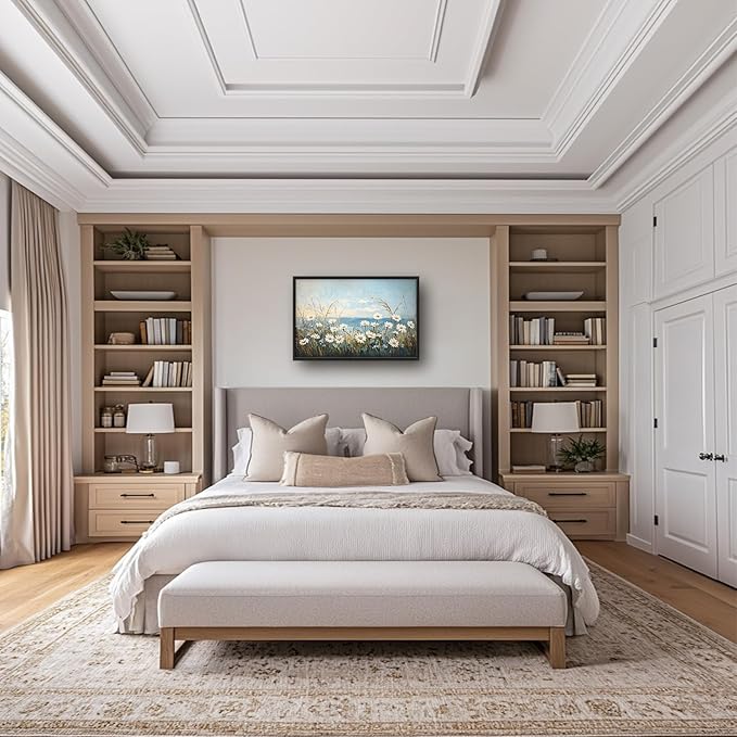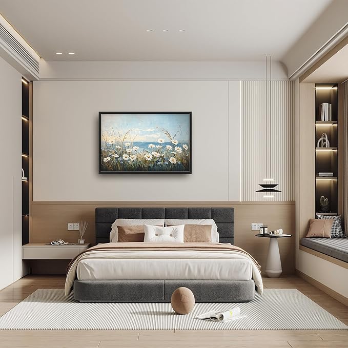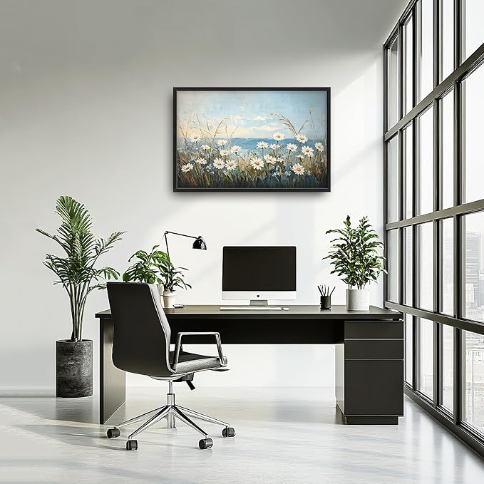 Flintis Large Ocean Daisy Framed Wall Art Beach Daisy Flower Pictures Wall Decor Abstract Natural Landscape Canvas Painting Print Artworks Framed for Living Room Bathroom Master Bedroom 36L X 24W