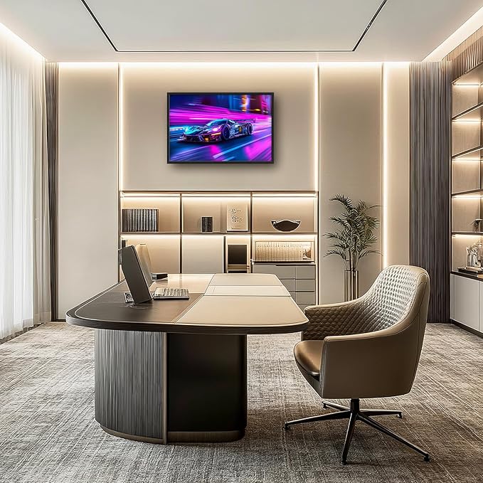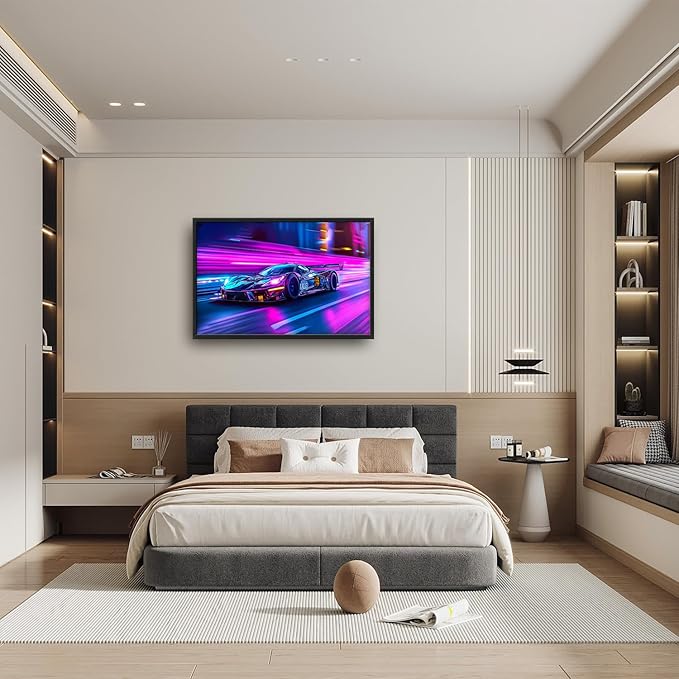 Flintis Large Racing Car Framed Wall Art Neon Race Supercar Pictures Wall Decor Abstract Colorful Car Canvas Painting Print Artworks Decor Framed for Living Room Bathroom Master Bedroom 36L X 24W