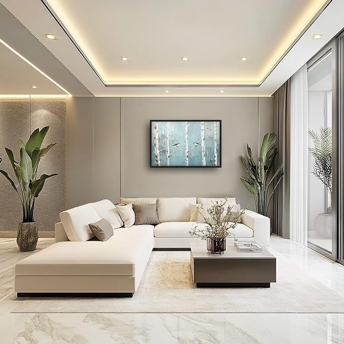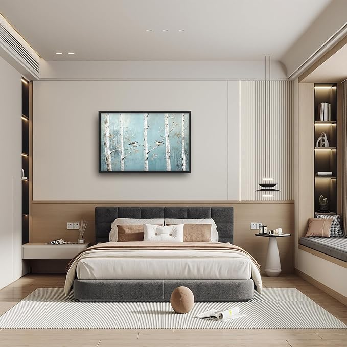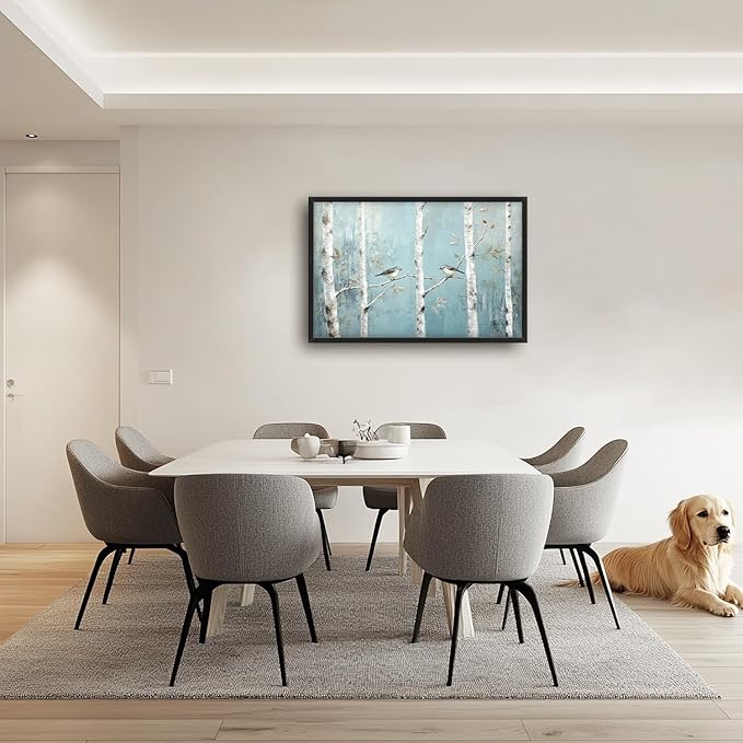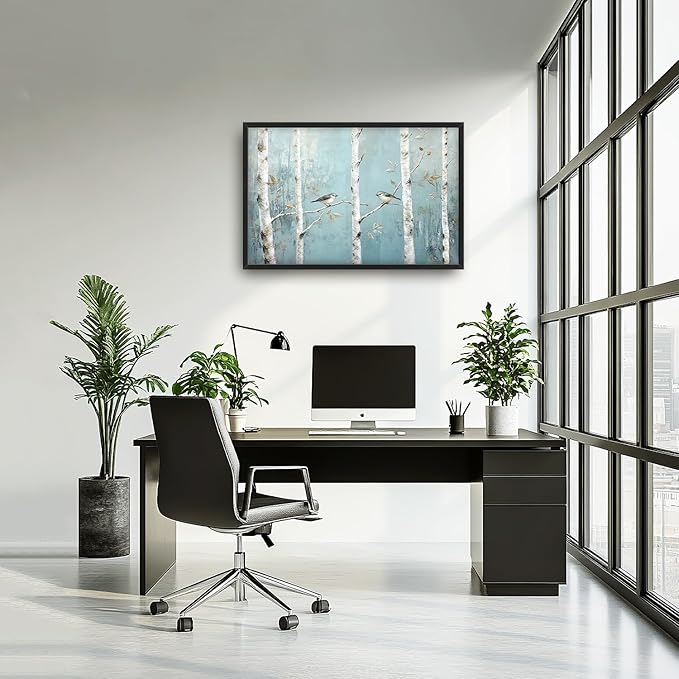 Flintis Large Birch Tree Bird Framed Wall Art Forest Birds Pictures Wall Decor Abstract Natural Landscape Canvas Painting Print Artworks Framed for Living Room Bathroom Master Bedroom 36L X 24W