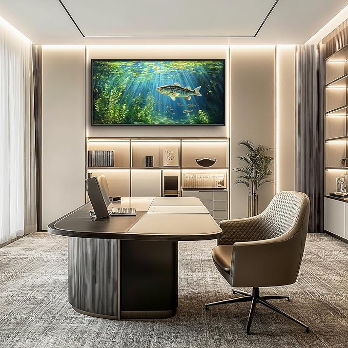 Flintis Large Ocean Fish Framed Wall Art Natural Green Plants Pictures Wall Decor Abstract Fishing Canvas Painting Print Artworks Decor Framed for Living Room Bathroom Master Bedroom 60L X 30W