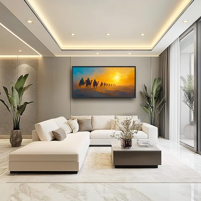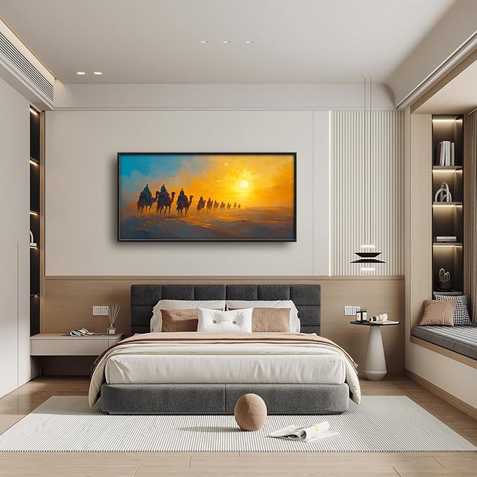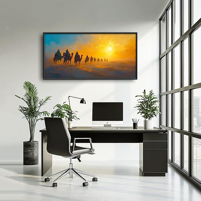 Flintis Large Desert Camel Framed Wall Art Sunset Camels Pictures Wall Decor Abstract Natural Landscape Canvas Painting Print Artworks Framed for Living Room Bathroom Master Bedroom 60L X 30W