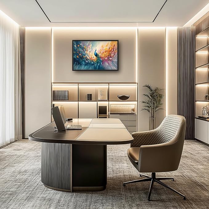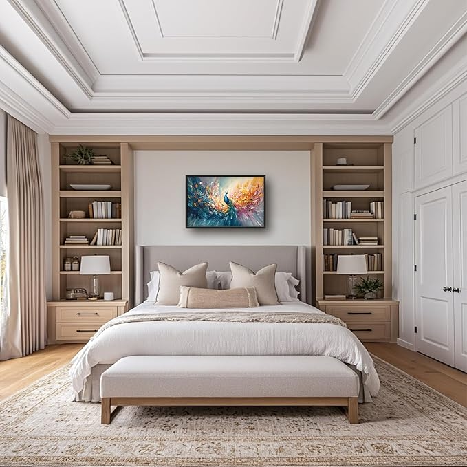 Flintis Large Colorful Peacock Framed Wall Art Peacock Feathers Pictures Wall Decor Abstract Animal Canvas Painting Print Artworks Decor Framed for Living Room Bathroom Master Bedroom 36L X 24W