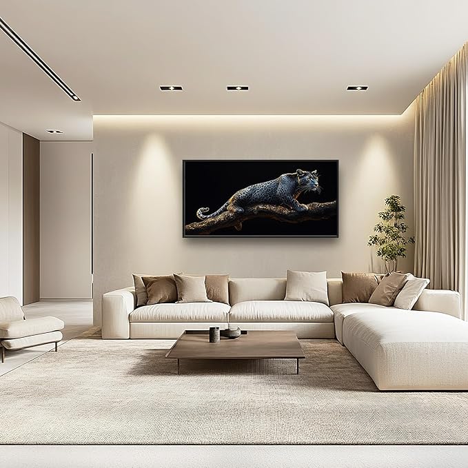 Flintis Large Black and White Leopard Framed Wall Art Leopard Pictures Wall Decor Abstract Animal Portrait Canvas Painting Print Artworks Framed for Living Room Bathroom Master Bedroom 60L X 30W