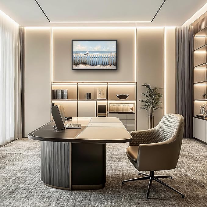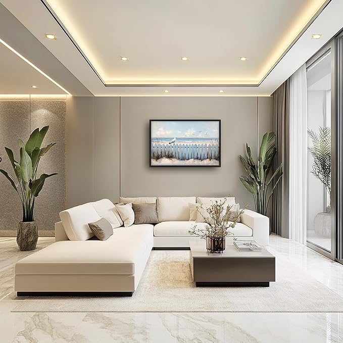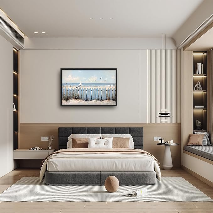 Flintis Large Ocean Beach Framed Wall Art Beach Seagull Pictures Wall Decor Abstract Natural Landscape Canvas Painting Print Artworks Framed for Living Room Bathroom Master Bedroom 36L X 24W