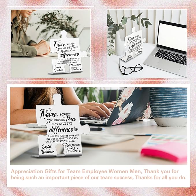 Social Worker Gifts, Thank You Appreciation Gifts for Social Workers Week Birthday Christmas Office Desk Decor Puzzle Piece Decorative Signs Plaques YCC28