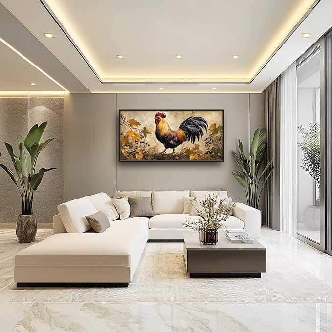 Flintis Large Rooster Framed Wall Art Vintage Chicken Grapevine Pictures Wall Decor Abstract Animal Canvas Painting Print Artworks Decor Framed for Living Room Bathroom Master Bedroom 60L X 30W
