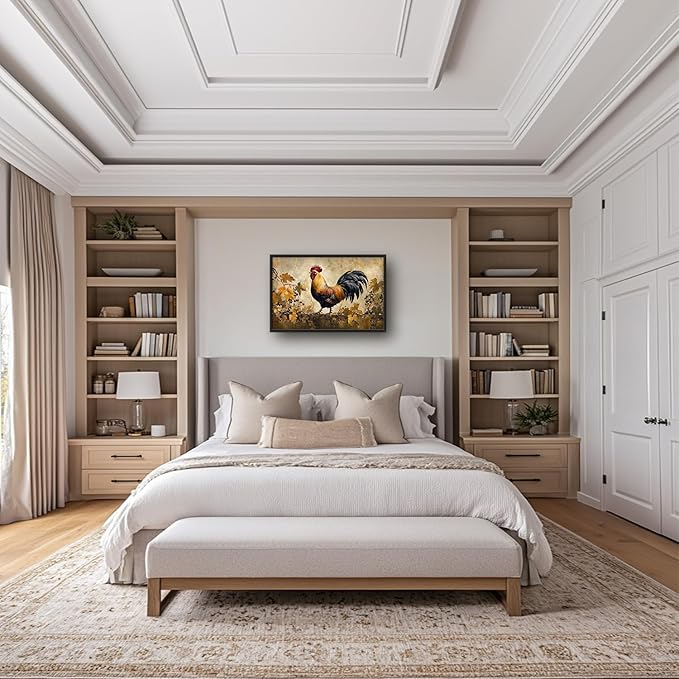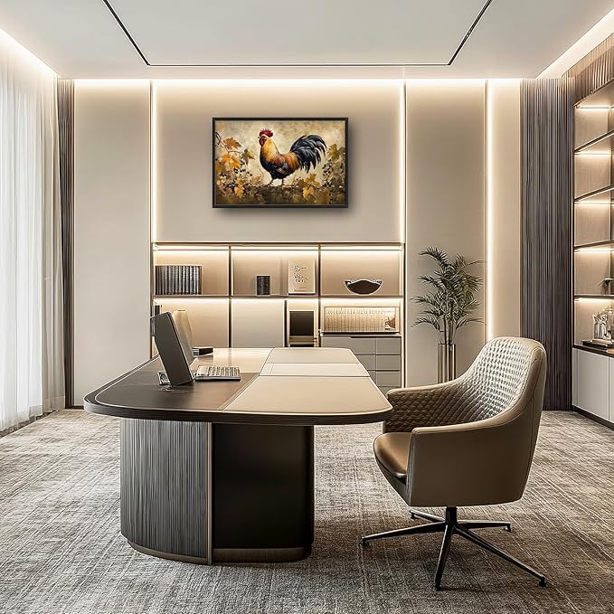 Flintis Large Rooster Framed Wall Art Vintage Chicken Grapevine Pictures Wall Decor Abstract Animal Canvas Painting Print Artworks Decor Framed for Living Room Bathroom Master Bedroom 36L X 24W