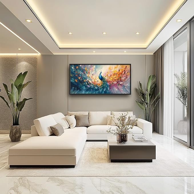 Flintis Large Colorful Peacock Framed Wall Art Peacock Feathers Pictures Wall Decor Abstract Animal Canvas Painting Print Artworks Decor Framed for Living Room Bathroom Master Bedroom 60L X 30W