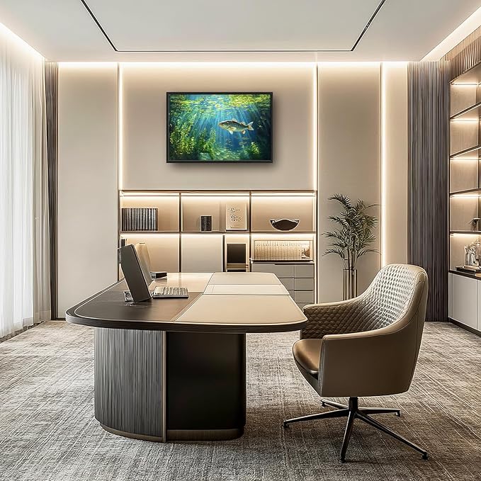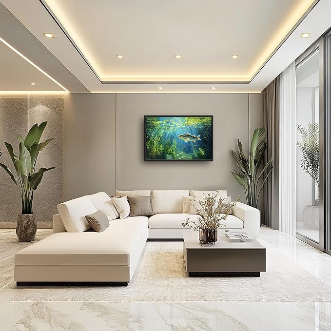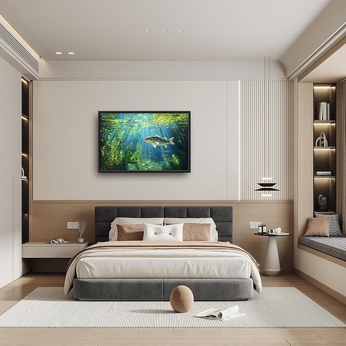 Flintis Large Ocean Fish Framed Wall Art Natural Green Plants Pictures Wall Decor Abstract Fishing Canvas Painting Print Artworks Decor Framed for Living Room Bathroom Master Bedroom 36L X 24W