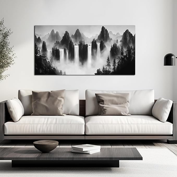 Mountain Pictures Wall Art for Bedroom Black and White Wall Decor for Living Room Waterfalls Wall Decor for Office 20 x 40 Inches