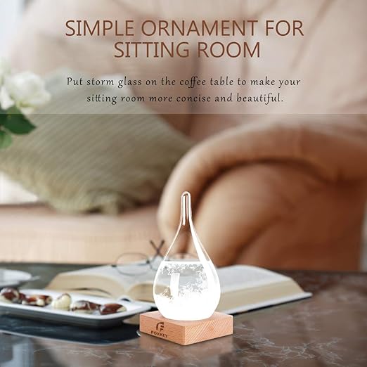 - Gorgeous Decor Center - FOXKEY Storm Glass Barometer is a fine home decor. Where you can place it (balcony, living room, showroom, bedroom, study, kitchen, office, bar, dining room or hotel room). Variation of storm glass is a very interesting project and makes us curious about it. It is also a craft weather gift.