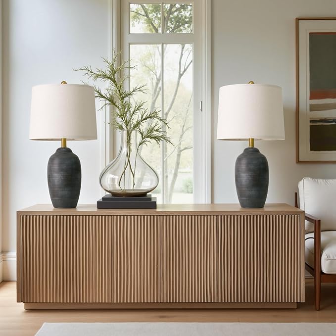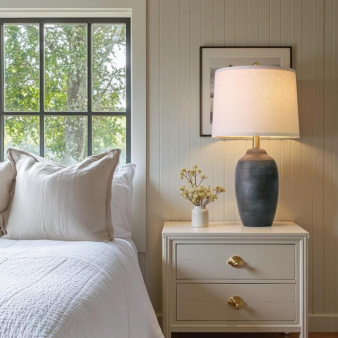 - 【Farmhouse Ceramic Table Lamp】USumkky Ceramic living room lamps boasts exquisite Vintage Ceramic Pot and linen lampshade , infusing an artistic atmosphere into your room. The Ceramic Pot table lamp doubles as both a warm night lamp and a stylish ornament, can easily fit into most decorative styles such as modern, classic, country, vintage, farmhouse, Northern Europe, boho and more.