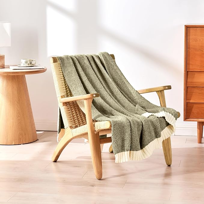 CozeCube Melange Blanket, Ultra Soft Olive Green and White Throw Blanket, Warm Cozy Knit Fuzzy Plush Reversible Throw for Couch Bed Sofa, 60"x80"