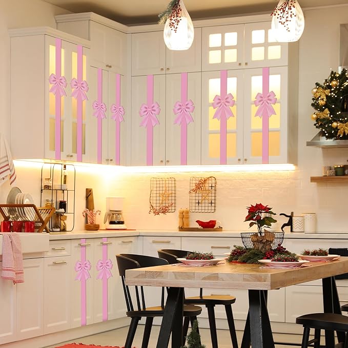 WILLBOND 6 Pieces Pink Christmas Cabinet Ribbons Bows Large Pink Bow Christmas Door Kitchen Cabinet Ribbon Bows Locker for Xmas Holidays Party Decorations Supplies