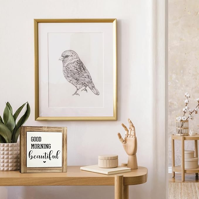 Good Morning Beautiful Sign, Couple's Greeting Signs Decor, Decorative Wooden Box Sign, Farmhouse Desk Signs, Sweet Home Decor for Bedroom, Romantic Gift for Girlfriend Wife, 5.9×5.9 inches