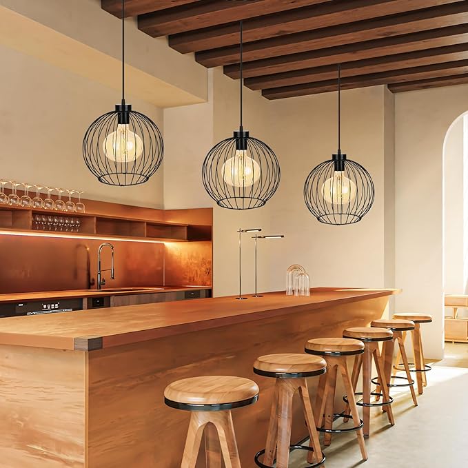 - ๐ก Vintage Modern Aesthetic โ Features a round, cage-style lampshade made from durable wrought iron with a black matte finish. A perfect blend of modern minimalism and vintage industrial charm.