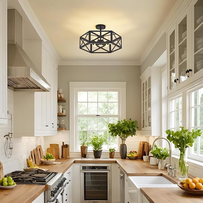 - [Modern Farmhouse Ceiling Light] OTeedo LED Hexagon Remote Control Ceiling Light kitchen island lighting adopts Hexagon design, and the overall appearance is simple and versatile. It is usually used as general lighting for kitchen islands, restaurants and corridors. This modern Industrial style is bright enough to illuminate the whole space well.