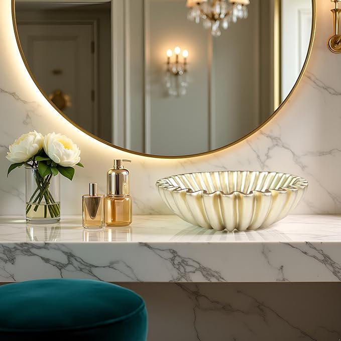 10" Large Decorative Bowl decor, Scalloped Bowls for Modern Home Decor,Ruffle Decor,Stylish Key Bowl for Entry Table,Decorative Fruit Bowl for Kitchen Counter,Golden