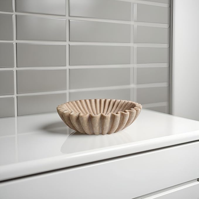 10" Large Decorative Bowl decor, Scalloped Bowls for Modern Home Decor,Ruffle Decor,Stylish Key Bowl for Entry Table,Decorative Fruit Bowl for Kitchen Counter,Artificial Stone Beige