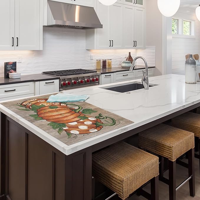 Artoid Mode Wood Pumpkins Fall Placemats, 24x36 Inch Extra Large Table Mats for Kitchen Countertop Protector Dining Decoration