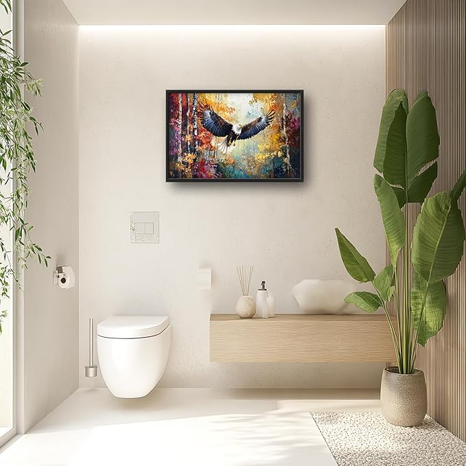 Extra Large Framed Bald Eagle Wall Art,Abstract Colorful Forest Wall Decor,Autumn Fall Forest Pictures for Living Room,Canvas Print Painting Modern Artwork Bedroom Office Home Decor 36L x 24W