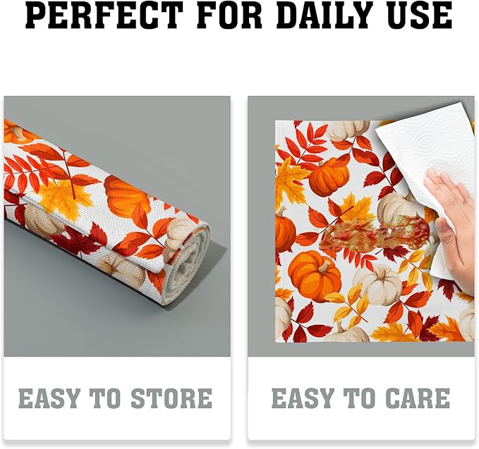 - High Quality: The fall placemats are made of high quality fabric, thick and wrinkle-proof, withstand frequent use and washing. It will protect your table surface from hot pans, scratches and spills.