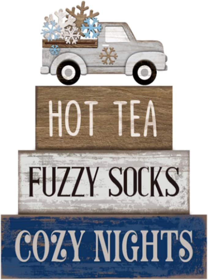 - Truck Tiered Tray Decorations: winter tiered tray decor set is designed in the shape of a classic truck with snowflake sign and books, come with 4 wooden signs, 1 truck sign and 3 wood decoration books; Vibrant Christmas centerpieces are suitable for winter parties and home to welcome the holiday