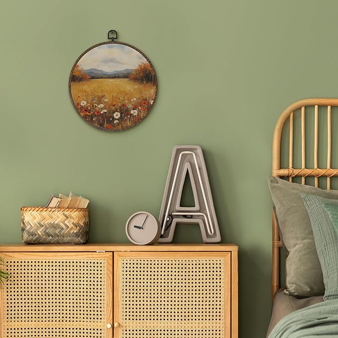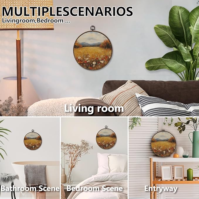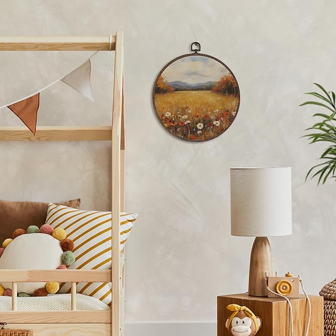 XNXLDYLH Vintage Fall Wildflower Round Framed Wall Art Decor, Rustic Farmhouse Harvest Hanging Wall Decor Decorations, Autumn Fall Floral Landscape Canvas Prints Wall Art Pictures Paintings, 10x10Inch