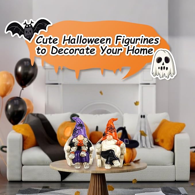 - 【Cute Decorations】: Skulls are regarded as symbol that people will facing death in a teasing way to weaken the sense of fear. So indoor Halloween decors that combine skull and gnome are sure to bring joy and fun for you and as exquisite additions to enhance the Halloween charm.