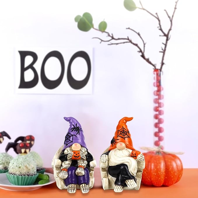 Halloween Gnomes Decorations 2 PCS Resin Skull Decor Skeleton Tabletop Figurines Indoor Holiday Collectible Statue for Women Men Kids