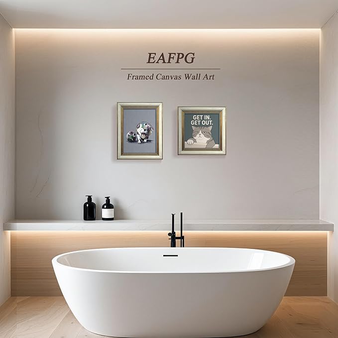 EAFPG Textured Gel Finish Gold Framed Vintage Wall Art for Bathroom, Funny Dog Painting Canvas Print for Living Room or Bedroom, Cute Animal Picture for Kitchen, Aesthetic Wall Decor, 8"x10"