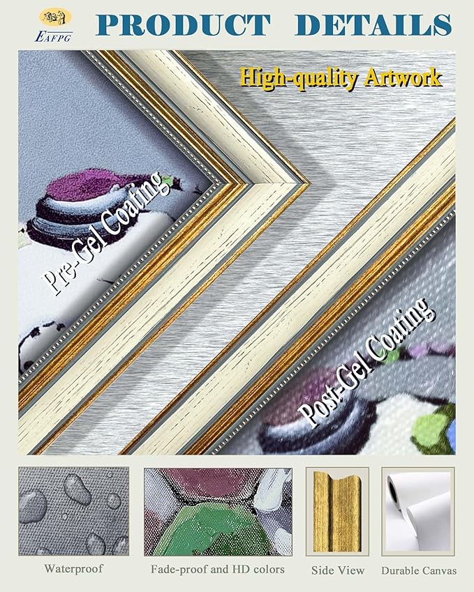 - [PREMIUM CANVAS ART & MATERIALS] Premium canvas wall art with durable fiber canvas and refined frame. EAFPG’s textured gel coating enhances color and moisture resistance. HD Giclee printing ensures vivid tones, sharp detail, and lasting quality