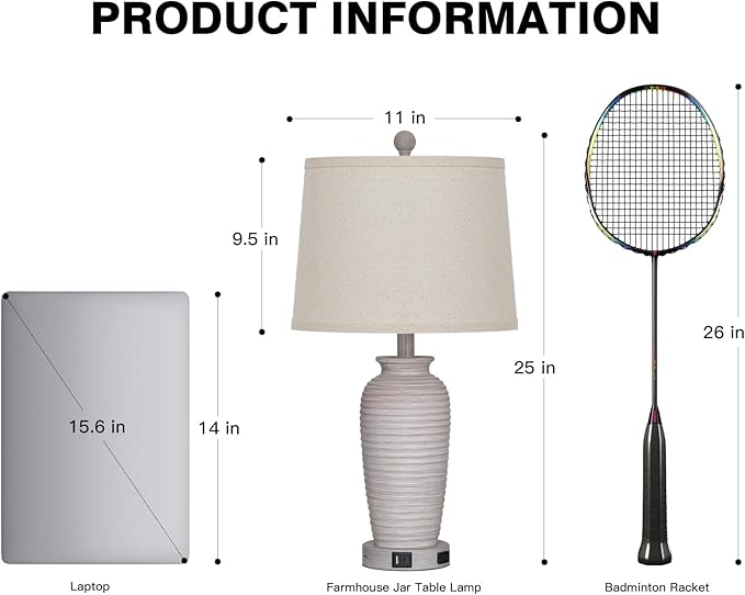 - 【Farmhouse Table Lamp】The size is: 25*12.5*9.5 inch. Made of high quality resin, and finished in a natural white linen lampshade. The touch lamp for nightstand is perfect for living room side table or bedroom. Add modern charm to your home or office